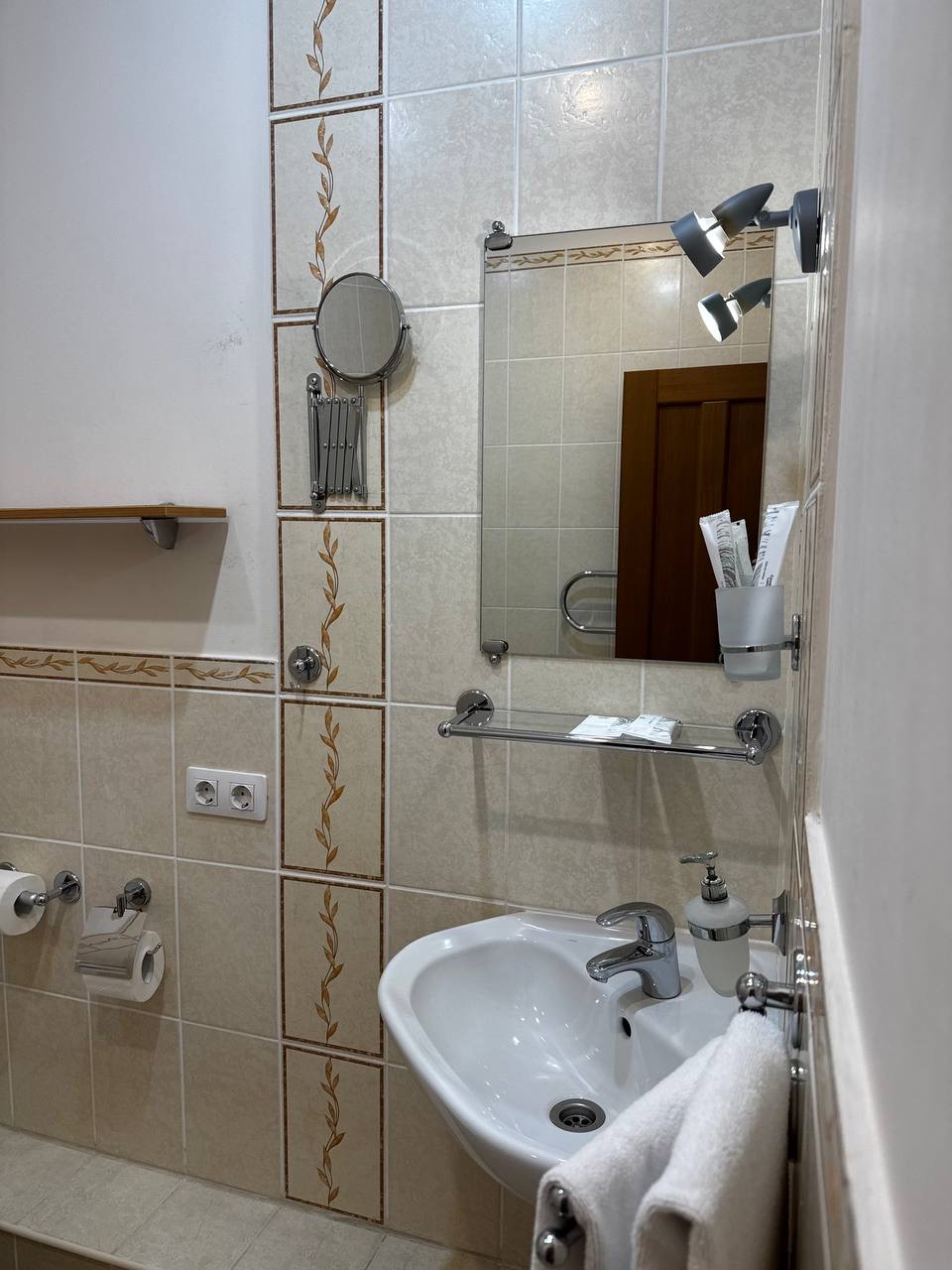 Две односпальные кровати, туалетная комната с душевой кабиной.