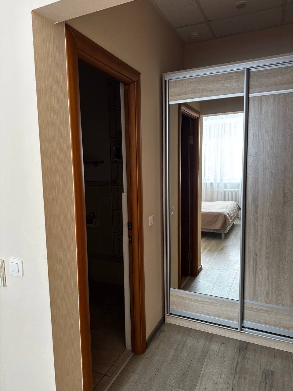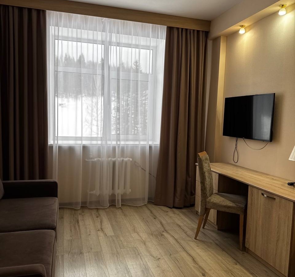 Две раздельные комнаты: спальная комната (двуспальная кровать), зона отдыха с диваном и журнальным столиком. Один санузел и одна ванная комната.