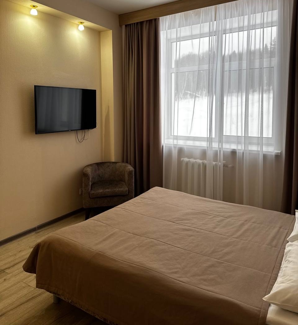 Корпус №1 расположен на берегу р. Кама. Он включает в себя 41 номер. В каждом номере есть кондиционер, холодильник, телефон, фен, телевизор.