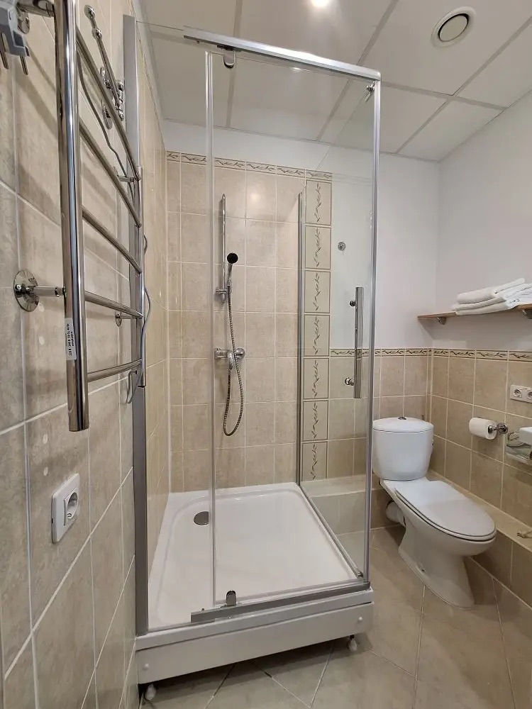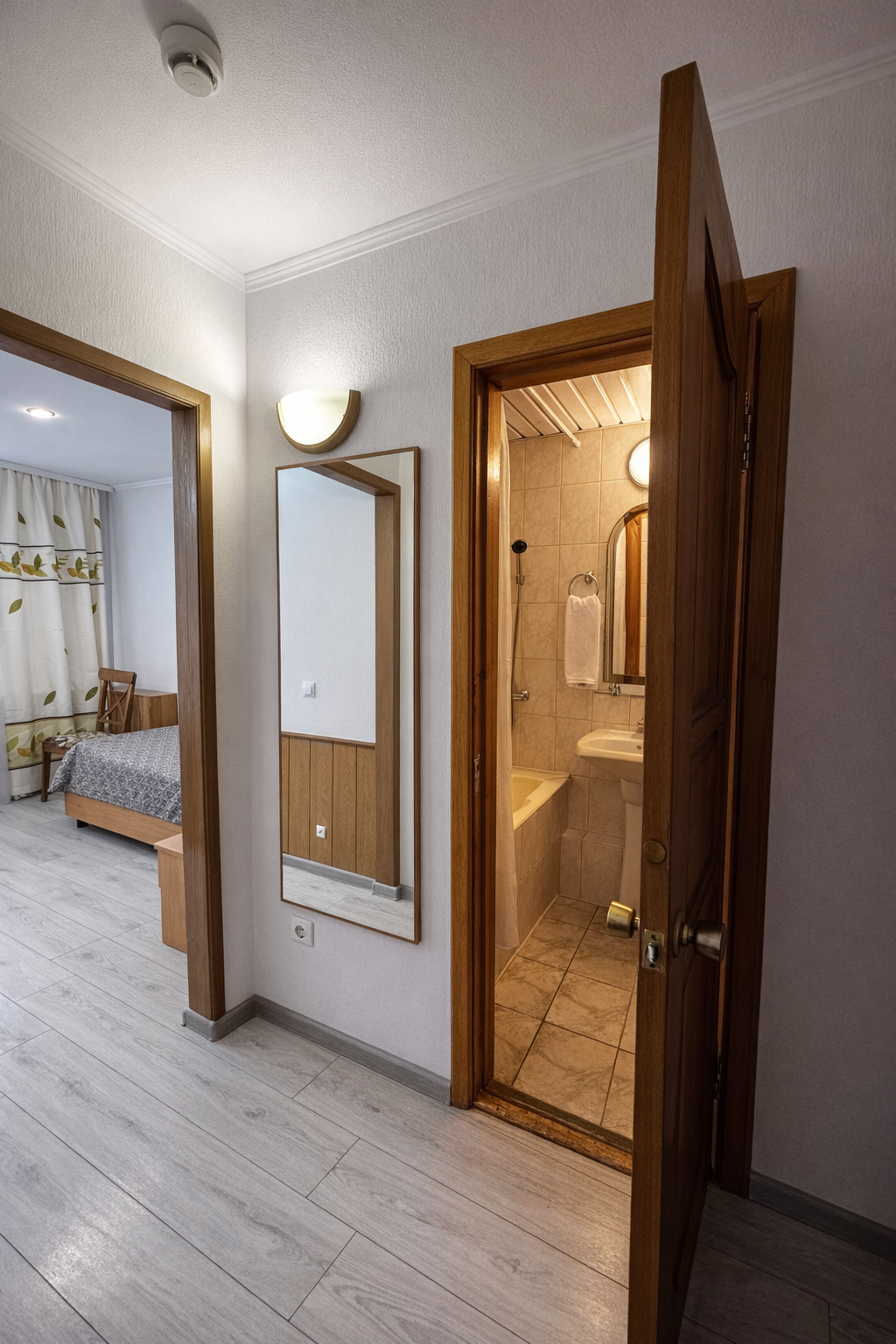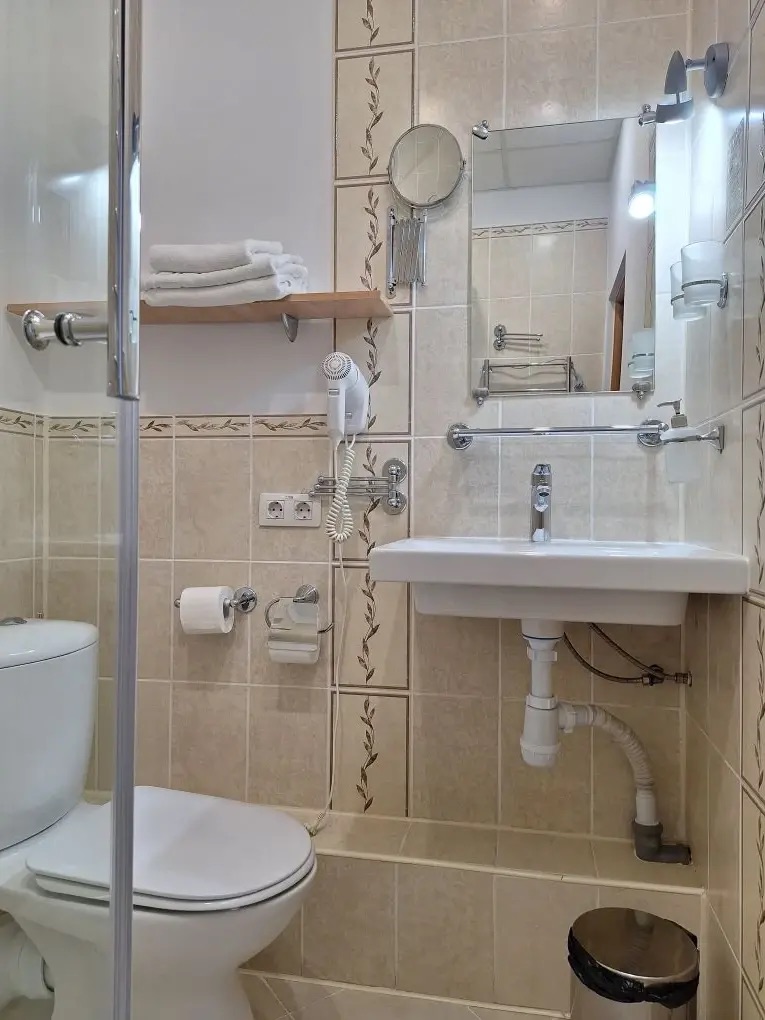 Однокомнатный. Две односпальные кровати. Туалетная комната с душевой кабиной.